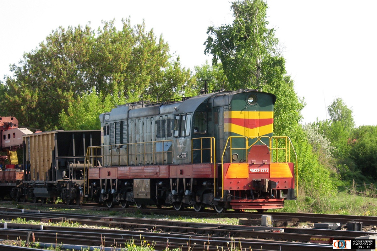 | Тепловоз ЧМЭ3-2273 с хозяйственным поездом на станции Йошкар-Ола, Марий Эл Автор: albo | Фото сделано 17.V.2012, опубликовано 22.VI.2013.