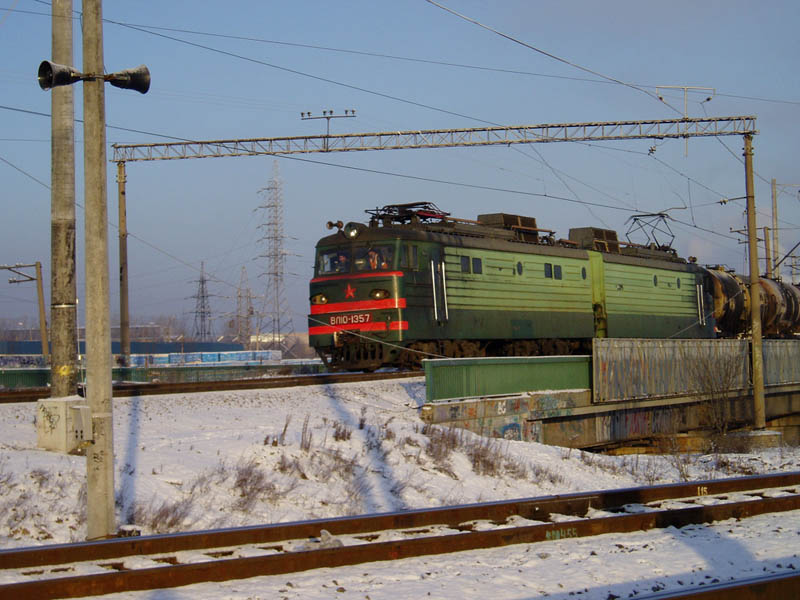 | Электровоз ВЛ10-1357 { VL10-1357 electric locomotive }, ст. Дача Долгорукова (Ладожский вокзал) { Dacha Dolgorukova station (Ladozhsky terminal)}, Санкт-Петербург Автор: Мадаев | Фото сделано 9.I.2004, опубликовано 19.I.2004.