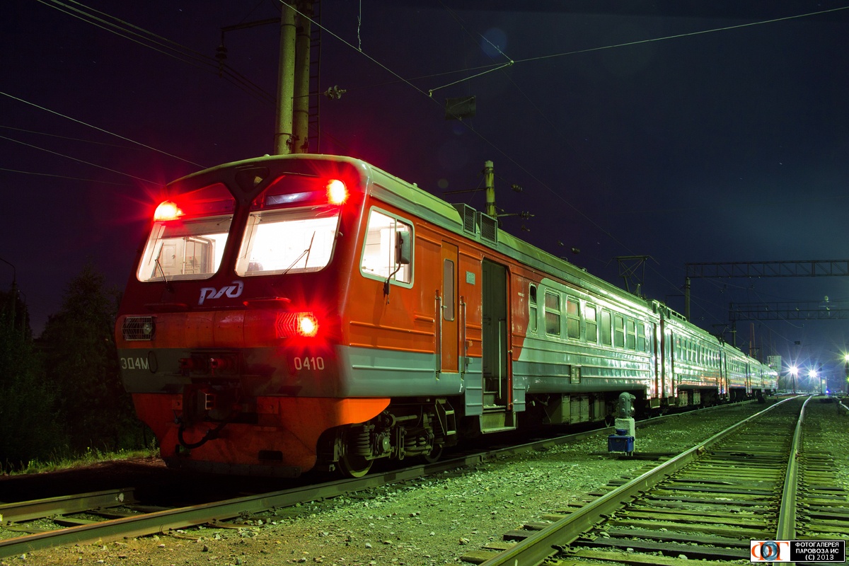 | "На ночёвке". Электропоезд ЭД4М-0410, станция Ревда, Свердловская обл. Автор: Кирилл Широков | Фото сделано 24.VIII.2013, опубликовано 26.VIII.2013.