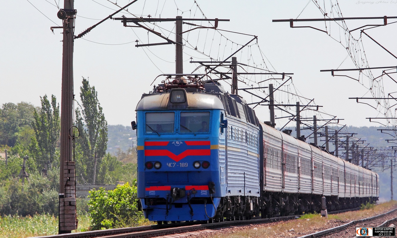 | Электровоз ЧС7-189, ст. Плавни, Запорожская обл. Автор: SDA | Фото сделано 25.VIII.2013, опубликовано 11.IX.2013.
