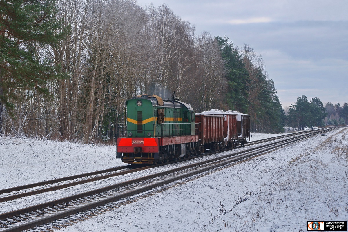 | Тепловоз ЧМЭ3-2590 с вывозным поездом на перегоне Рейтанов - Ляховичи, Брестская обл. Автор: Siroger | Фото сделано 27.XI.2013, опубликовано 3.XII.2013.