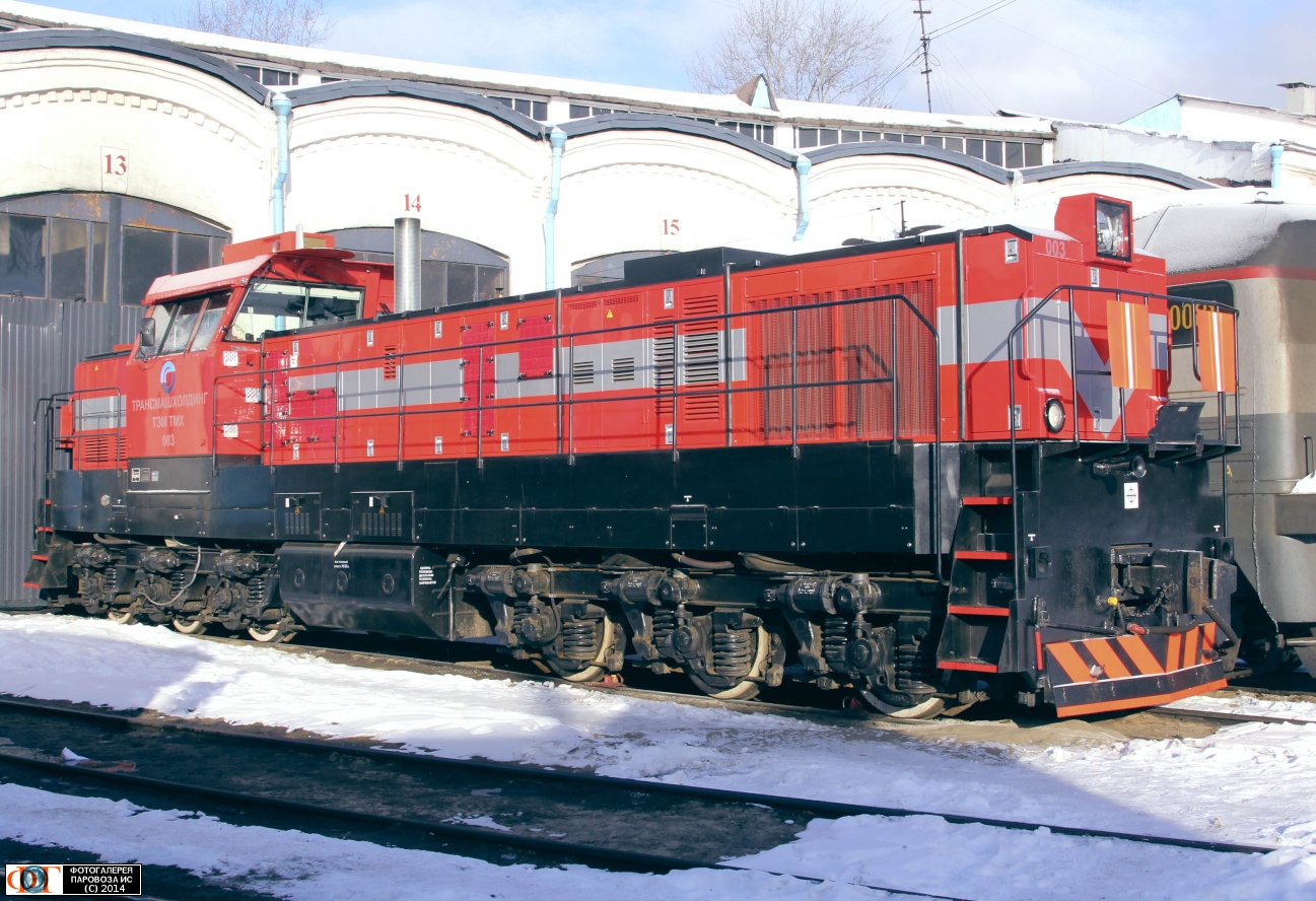 | Тепловоз ТЭМ-ТМХ-003 на веере депо Лихоборы-Окружные, Москва Автор: bars0017 | Фото сделано 29.I.2014, опубликовано 17.II.2014.