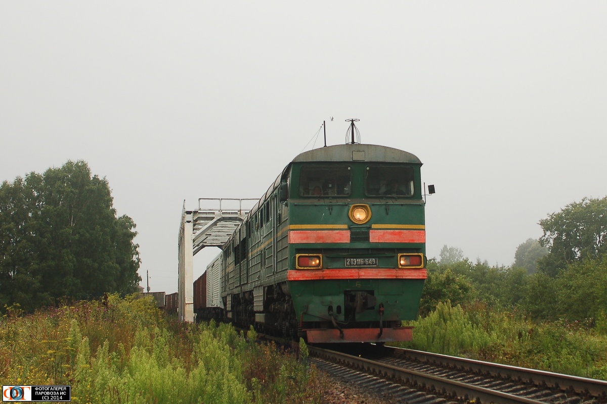 | Тепловоз 2ТЭ116-649 с грузовым поездом, перегон Мста - Дремуха, Тверская обл. Автор: Владислав Фоменко | Фото сделано 21.VII.2013, опубликовано 19.II.2014.