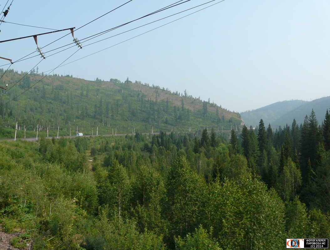| Перегон Нанхчул - Хабзас линии Абакан - Новокузнецк, Хакасия Автор: Александр Иванов | Фото сделано 29.VII.2012, опубликовано 15.III.2014.