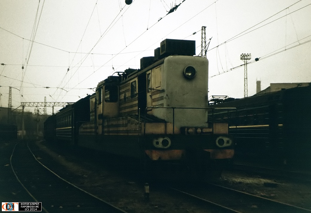 | Электровоз ВЛ26М-002 в депо Засулаукс, Латвия Автор: Огнев О. В. | Фото сделано 19.III.1991, опубликовано 31.III.2014.