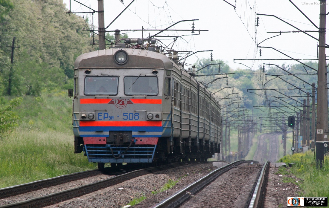 | Электропоезд ЭР9М-508 на перегоне Фастов-I - Сорочий Брод, Киевская обл. Автор: Вячеслав | Фото сделано 30.V.2010, опубликовано 14.IV.2014.