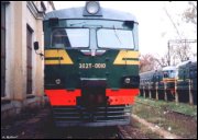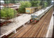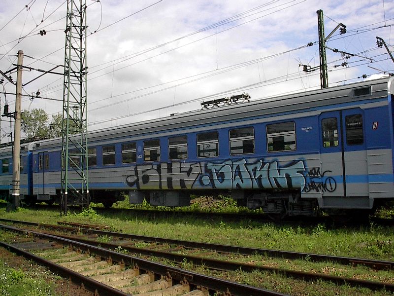| Электропоезд ЭД4МК-0020, покрытый "граффити" { ED4MK-0020 EMU train in graffiti }, депо Перерва { Pererva shed }, Москва Автор: Илья Антоновский | Фото сделано 2003 г, опубликовано 22.II.2004.