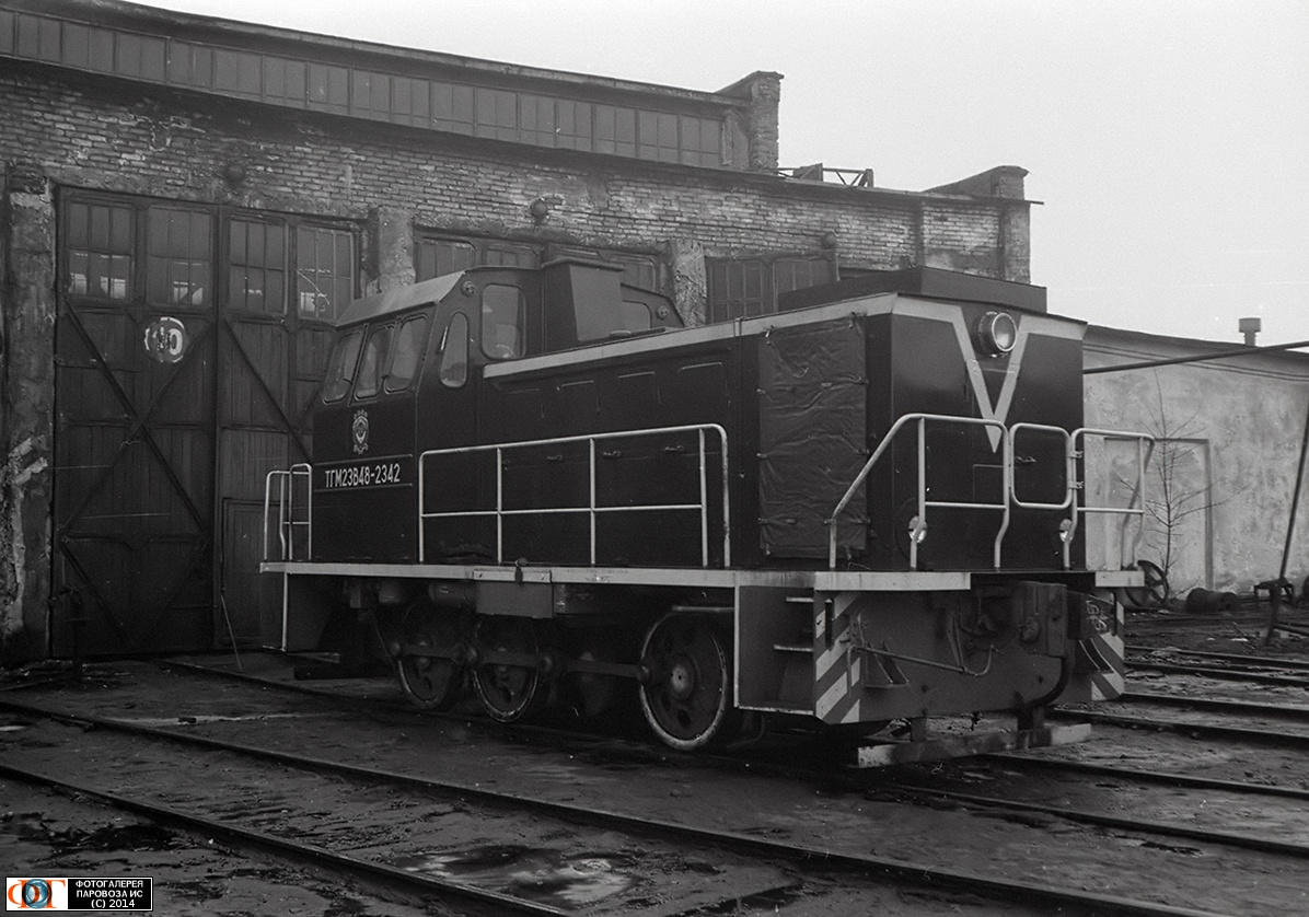 | Тепловоз ТГМ23В48-2342 в ТЧ Новосокольники, Псковская обл. Автор: Огнев О. В. | Фото сделано 20.III.1991, опубликовано 19.VI.2014.