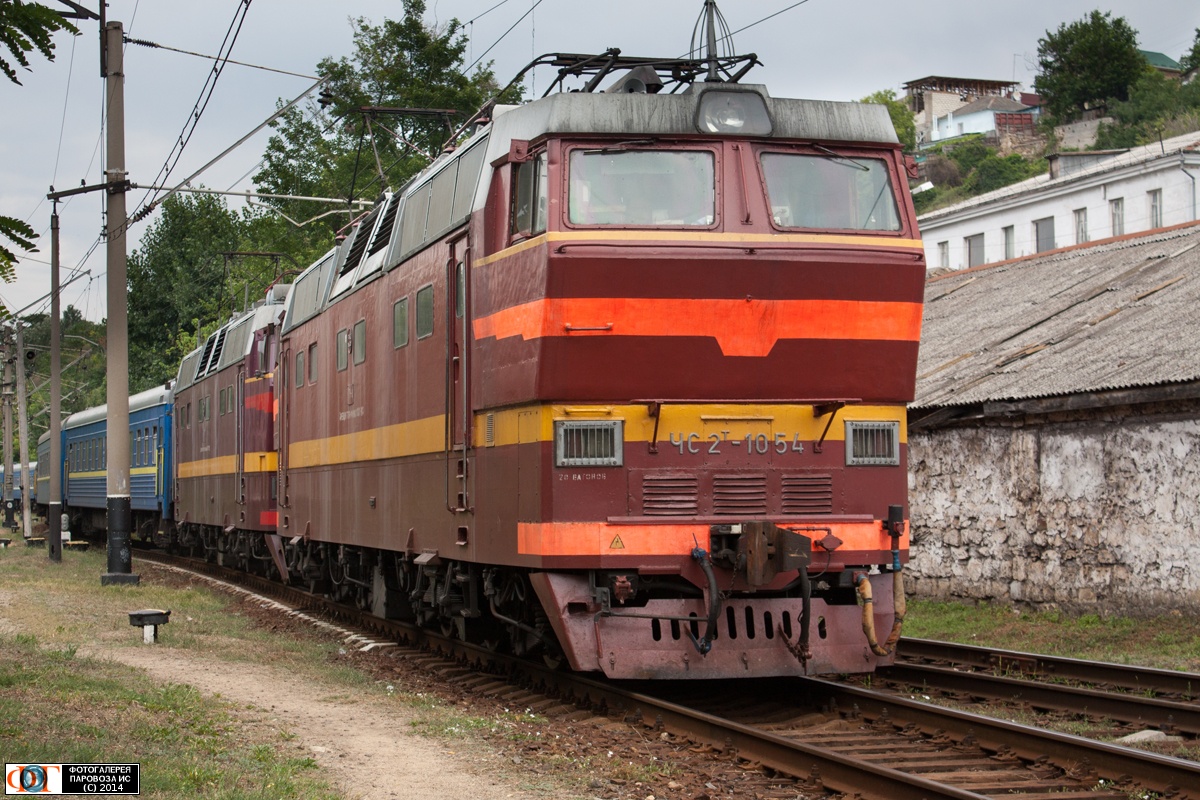 | Электровозы ЧС2Т-1054, ЧС2Т-1002 с поездом №27 Киев - Севастополь прибывают на станцию Севастополь, Севастополь Автор: Игорь | Фото сделано 13.VII.2014, опубликовано 15.VII.2014.