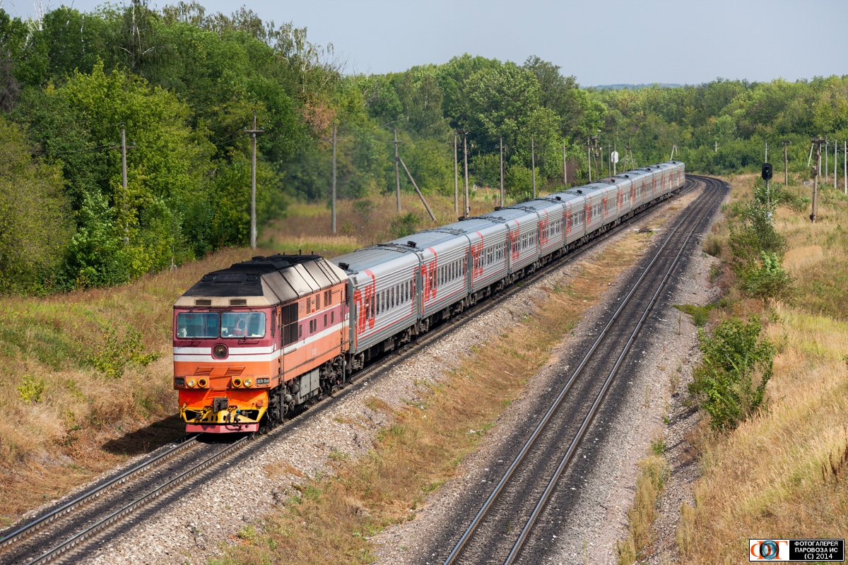 Тепловоз ТЭП70-0544 с пассажирским поездом, перегон Грунин Воргол - Становая, Липецкая обл.