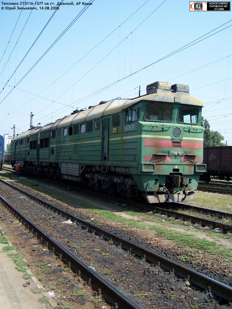 | Тепловоз 2ТЭ116-1577 { 2TE116-1577 diesel locomotive }, ст. Джанкой { Dzhankoy station }, Крым Автор: Зинькевич Ю. | Фото сделано 14.VIII.2006, опубликовано 13.X.2006.