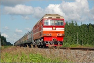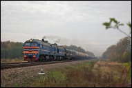 | Тепловоз 2М62У-0223 с поездом №312 Калининград - Харьков на перегоне Знаменск - Междуречье, Калининградская обл. Автор: Leha | Фото сделано 2.X.2010, опубликовано 16.X.2014.