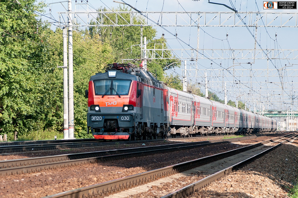 | Электровоз ЭП20-030, перегон Люберцы-I - Перово, Москва Автор: Щукин Д. | Фото сделано 16.VIII.2014, опубликовано 10.XI.2014.