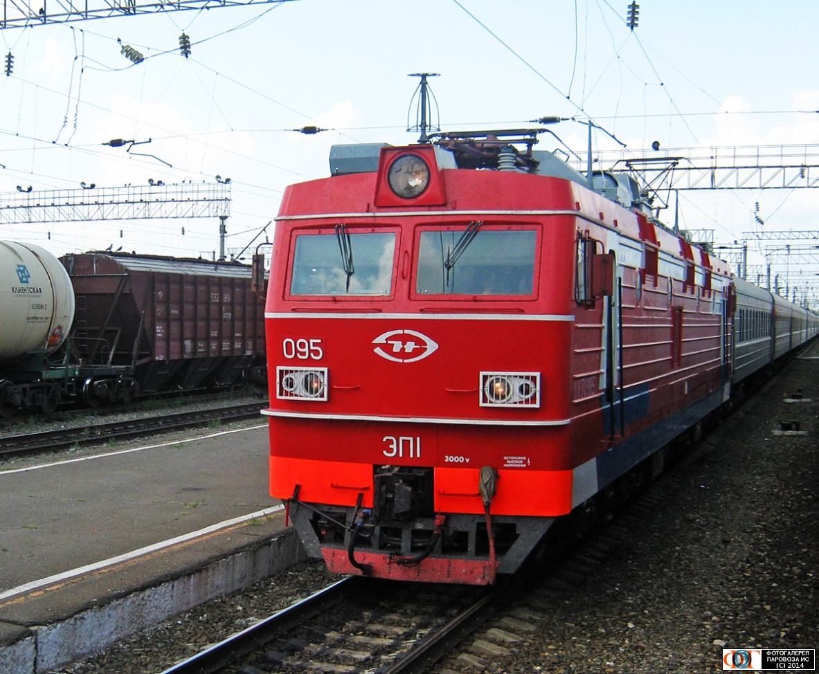 | Электровоз ЭП1-095 с пассажирским поездом на ст. Петров Вал, Волгоградская обл. Автор: Иван | Фото сделано 2012 г, опубликовано 23.XI.2014.