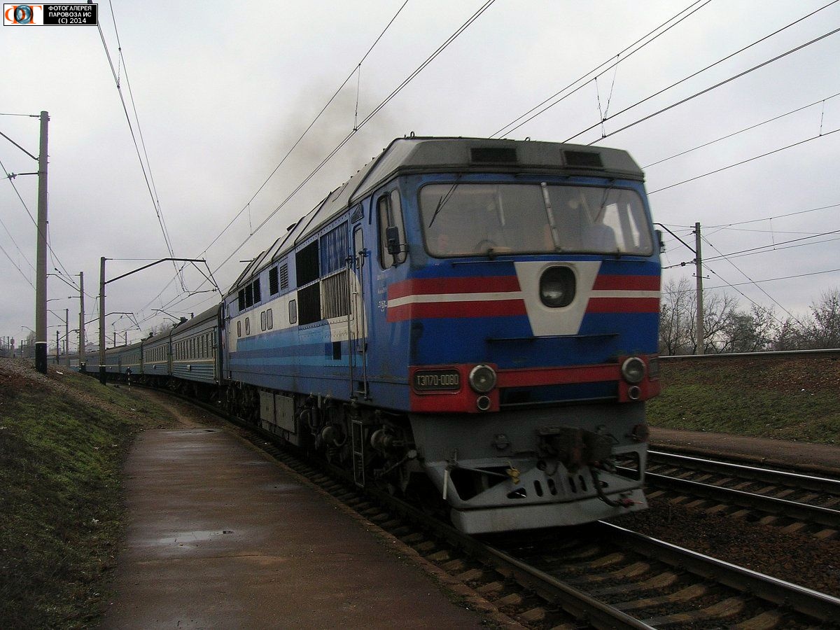 | Тепловоз ТЭП70-0080 на станции Харьков-Пассажирский, Харьковская обл. Автор: Владимир Шатоха | Фото сделано IV.2007, опубликовано 2.I.2015.