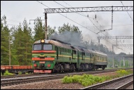 | Тепловоз М62-1501 с грузовым поездом, перегон Янега - Лодейное Поле, Ленинградская обл. Автор: stefance | Фото сделано 31.I.2015, опубликовано 2.II.2015.