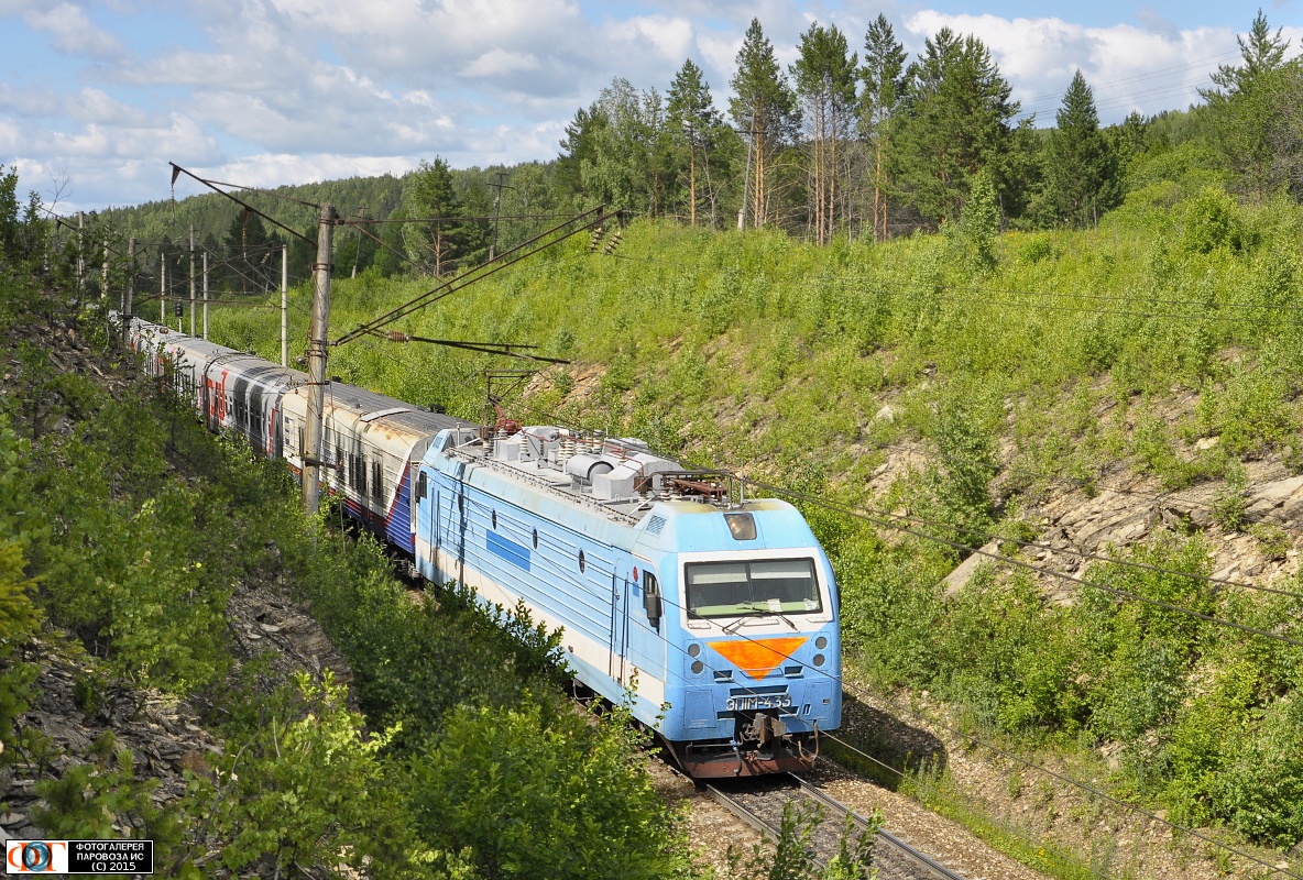 | Электровоз ЭП1М-433 с пассажирским поездом на перегоне Чёрная Речка - Красноуфимск, Свердловская обл. Автор: Владислав Фоменко | Фото сделано 13.VII.2014, опубликовано 5.II.2015.