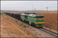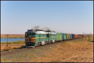 | Тепловоз 2ТЭ116-1302 с грузовым поездом на перегоне разъезд Nº4 - Зензели, Астраханская обл. Автор: Konrad Bigaj | Фото сделано 23.VIII.2012, опубликовано 19.II.2015.