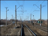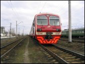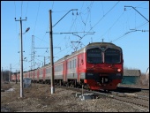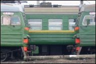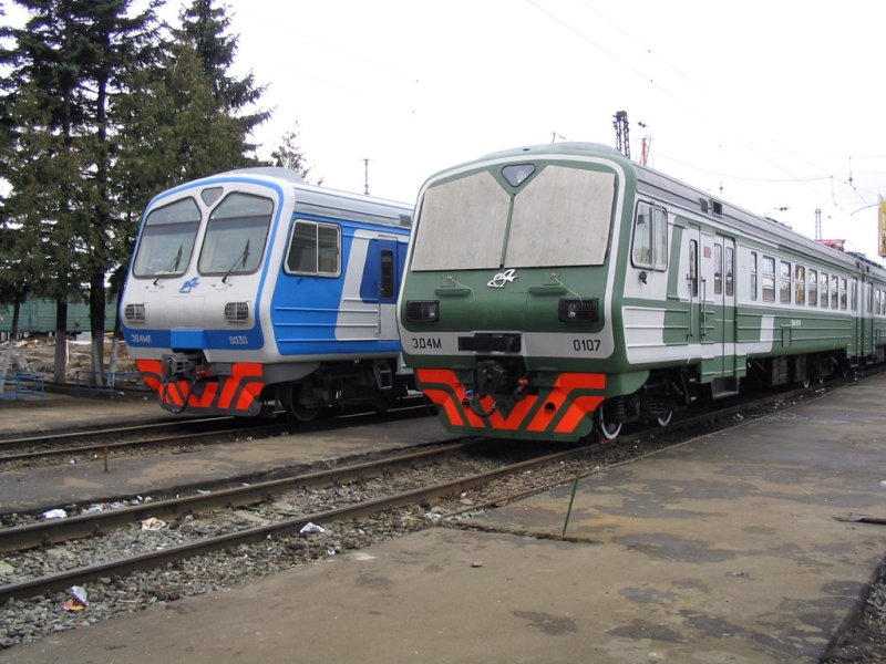 | Электропоезда ЭД4М-0030 и 0107 { ED4M-0030 and 0107 EMU trains }, депо Раменское { Ramenskoe shed }, Московская обл. Автор: Дмитрий Чистяков | Фото сделано 10.IV.2004, опубликовано 11.IV.2004.