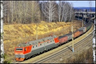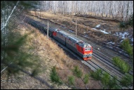 | Электровоз 2ЭС6-018 с грузовым поездом на перегоне Косулино - Исток, Свердловская обл. Автор: grafist034 | Фото сделано 11.IV.2015, опубликовано 13.IV.2015.