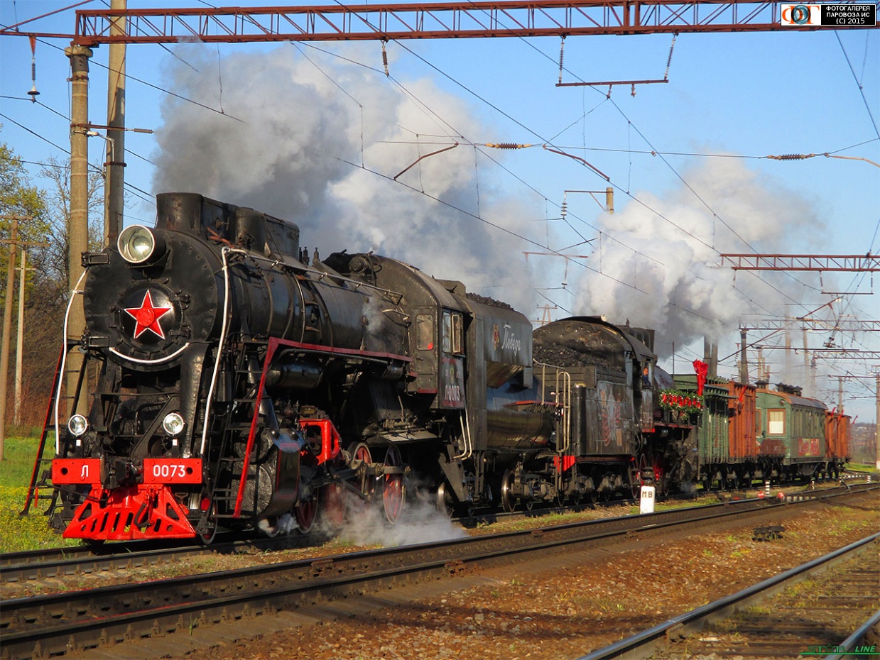 | Паровозы Л-0073 и Эр739-99 с ретропоездом "Победа". Станция Кавказская, Краснодарский край Автор: STAR LINE | Фото сделано 20.IV.2015, опубликовано 22.IV.2015.