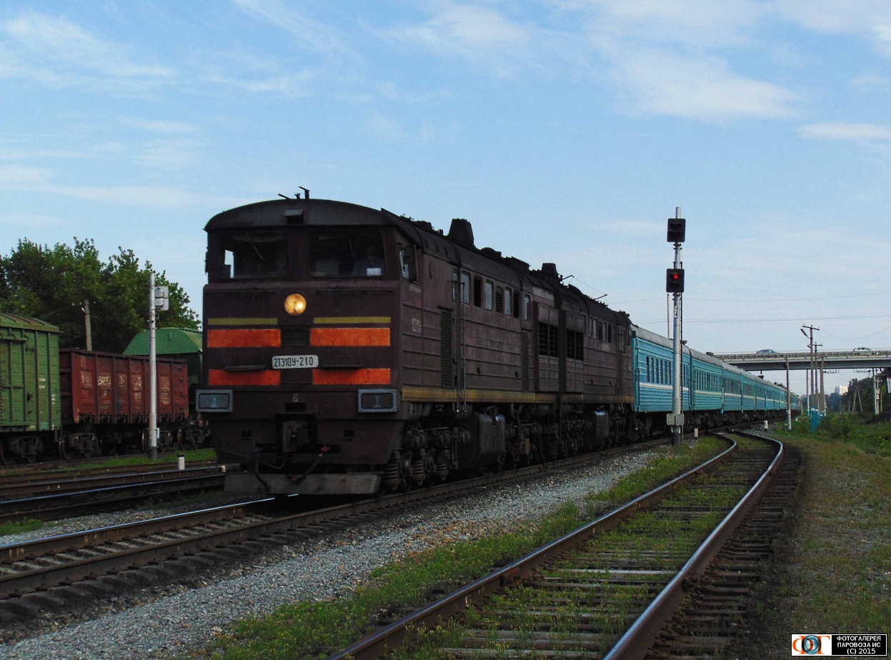 | Тепловоз 2ТЭ10У-0210 с поездом №39 Астана — Санкт-Петербург следует по станции Шагол, Челябинская обл. Автор: Валерий | Фото сделано 28.VI.2015, опубликовано 2.VII.2015.