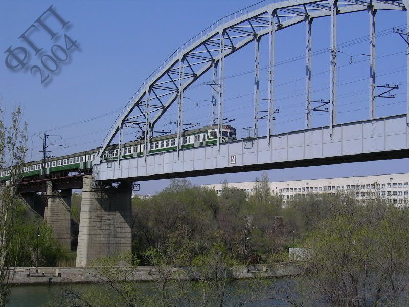 | Электропоезд ЭД9Т-0023 { ED9T-0023 EMU train }, мост через Волго-Донской канал { Volga-Don channel bridge }, Волгоградская обл. Автор: Плотников П. | Фото сделано 25.IV.2004, опубликовано 30.IV.2004.