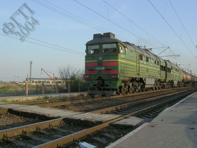 | Тепловоз 2ТЭ116-1586 { 2TE116-1586 diesel locomotive }, пл. Руднева { Rudneva station }, Волгоградская обл. Автор: Плотников П. | Фото сделано 25.IV.2004, опубликовано 30.IV.2004.