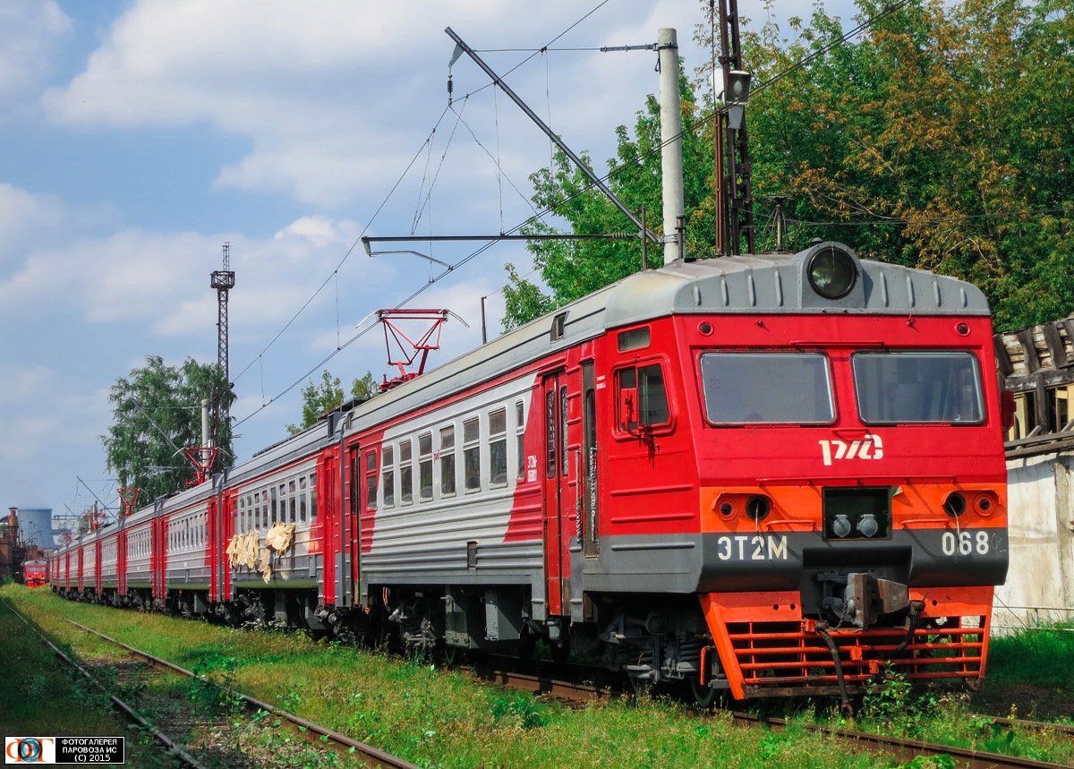 | Головной вагон ЭТ2М-06801 в составе электропоезда ЭД4М-0229 на территории ОАО «Московский ЛРЗ», Москва Автор: ishikh | Фото сделано 10.VIII.2015, опубликовано 20.VIII.2015.