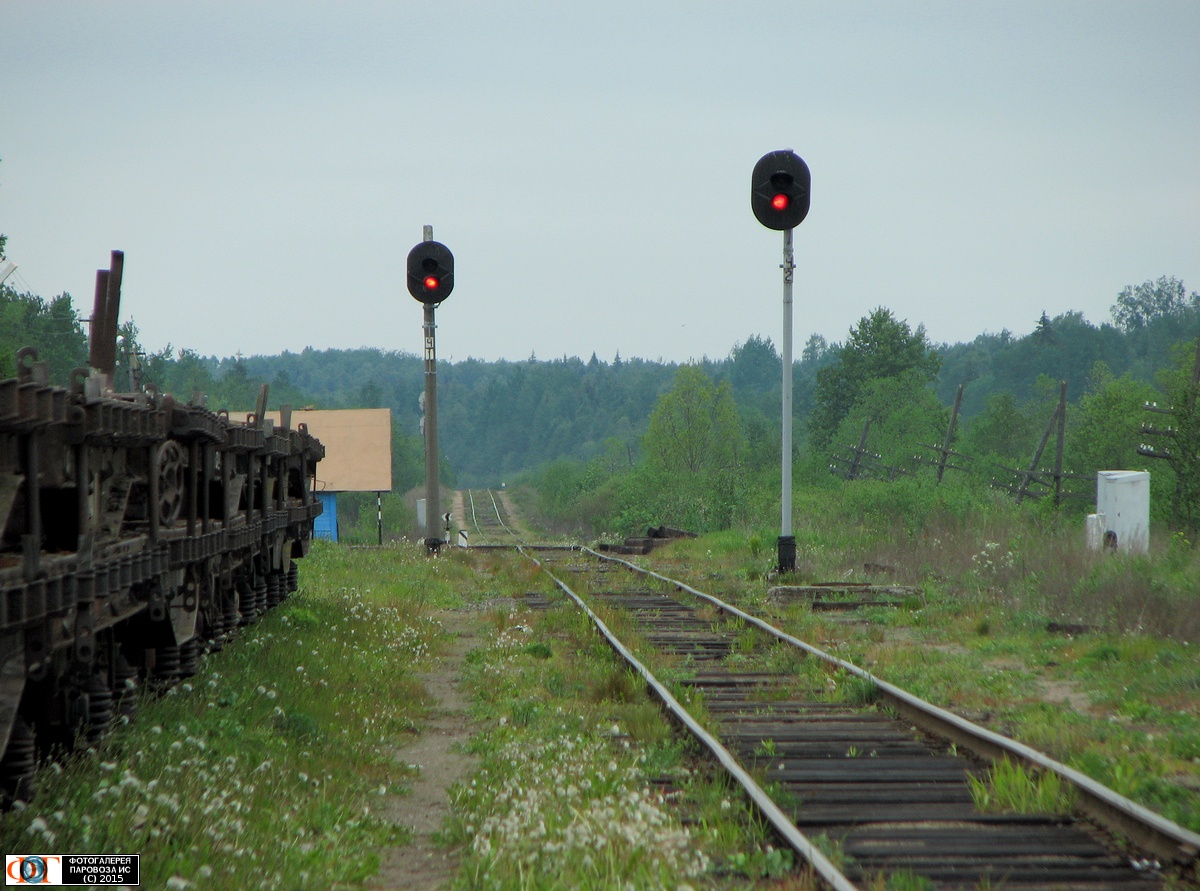 | Чётные выходные светофоры станции Рогавка, Новгородская обл. Автор: А.М. | Фото сделано 3.VI.2008, опубликовано 28.VIII.2015.