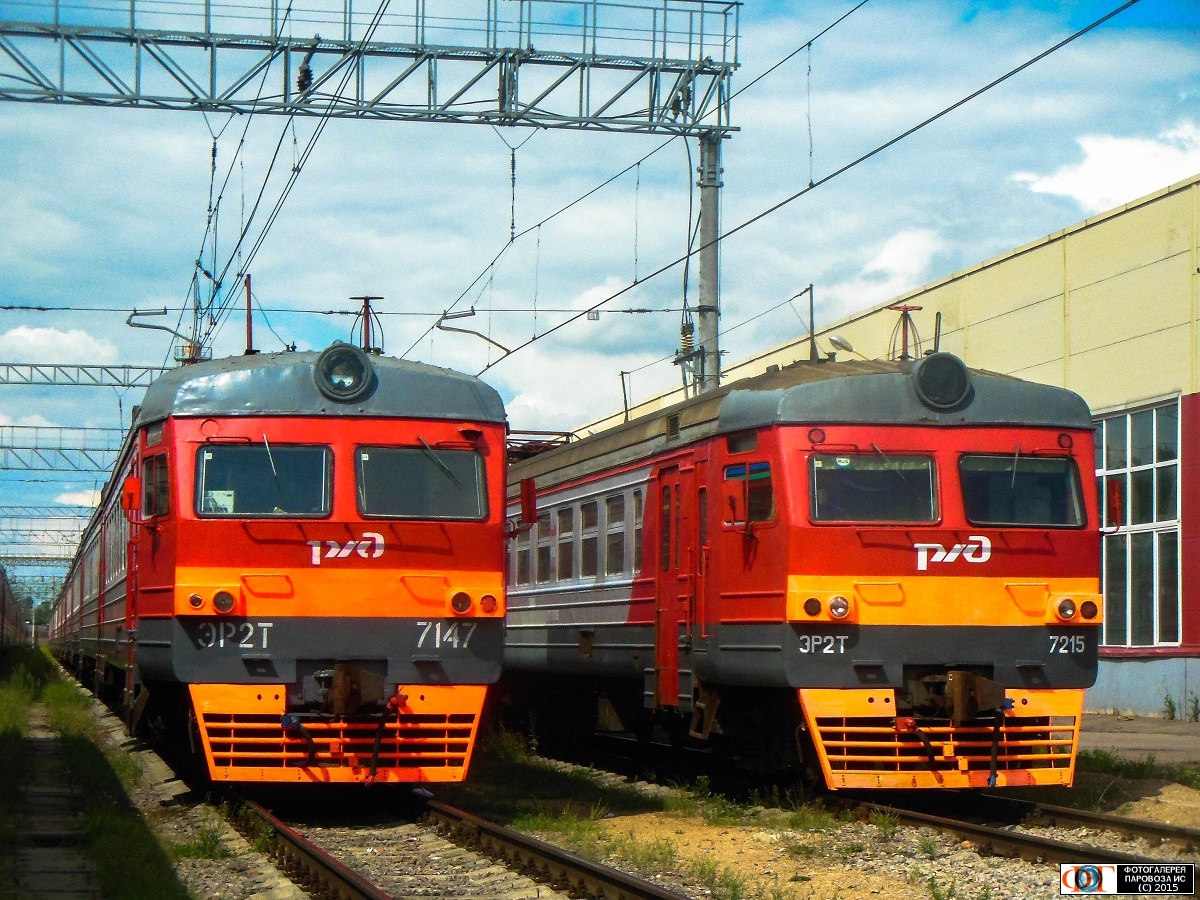 | Электропоезда ЭР2Т-7147 и ЭР2Т-7215, депо Крюково, Москва Автор: Олег | Фото сделано VII.2015, опубликовано 17.X.2015.
