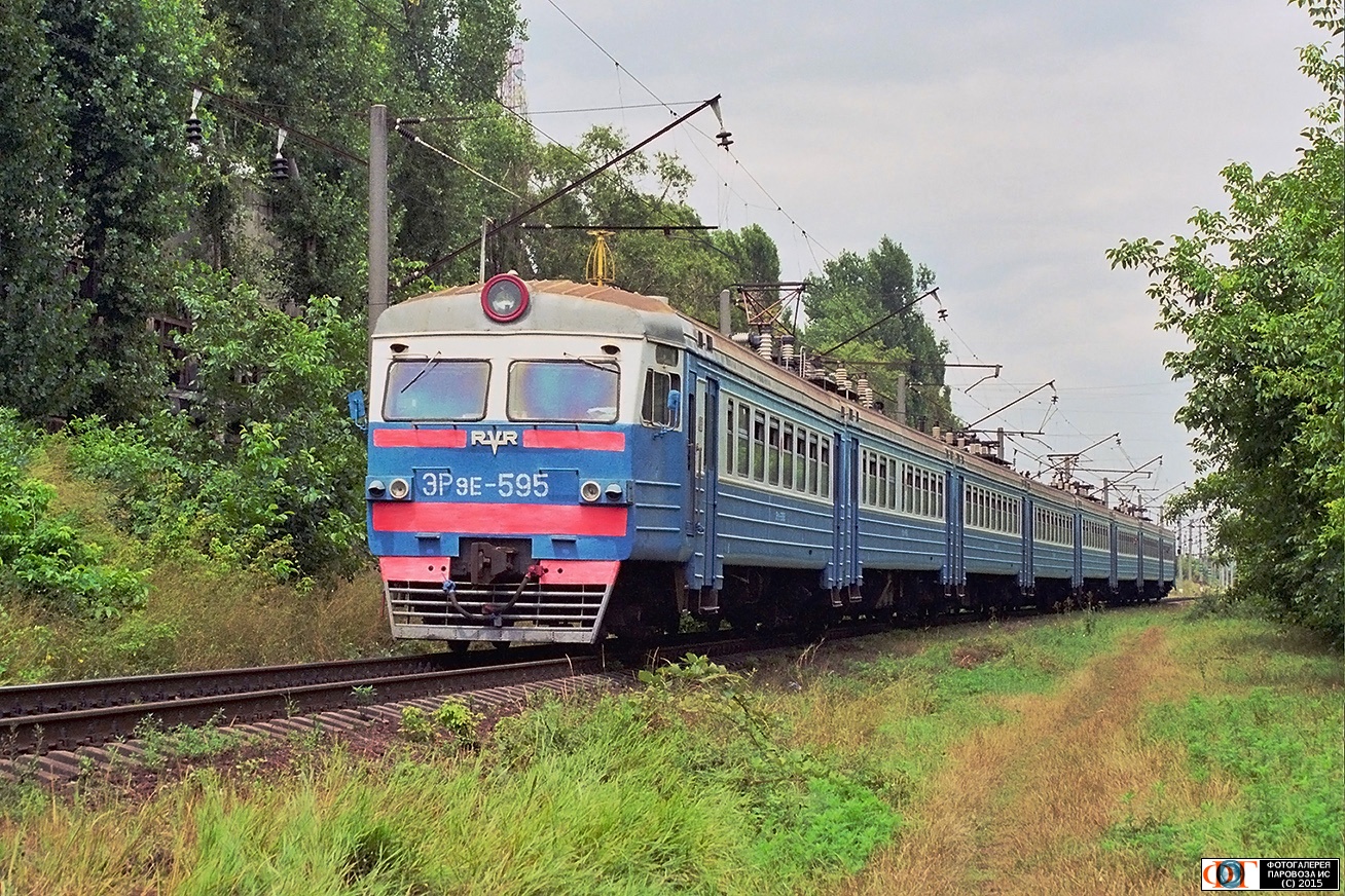 | Электропоезд ЭР9Е-595 на станции Краснодар-II, Краснодарский край Автор: Dmittri | Фото сделано 23.VII.2002, опубликовано 15.XI.2015.
