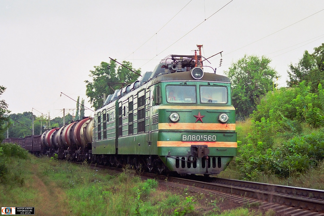 | Электровоз ВЛ80К-560 с грузовым поездом на станции Краснодар-II, Краснодарский край Автор: Dmittri | Фото сделано 23.VII.2002, опубликовано 17.XI.2015.