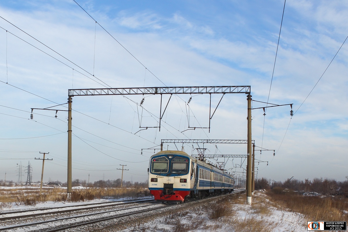 | Электропоезд ЭД9МК-0076 на перегоне Май-Кудук (Майкудук) - Жана Караганды, Карагандинская область Автор: motowoz | Фото сделано 15.XII.2015, опубликовано 17.XII.2015.