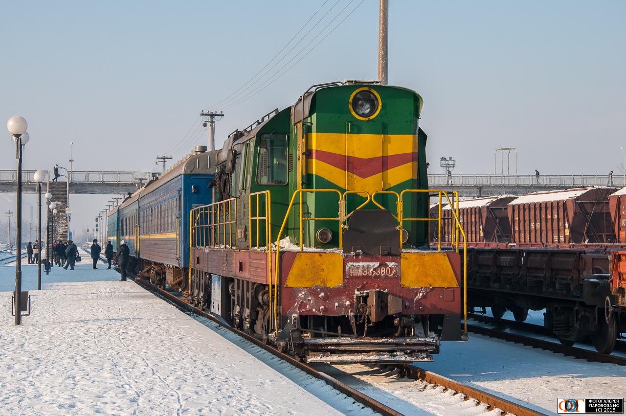 | Тепловоз ЧМЭ3-3807 с пригородным поездом Херсон - Брилёвка, ст. Херсон, Херсонская обл. Автор: Vyacheslav | Фото сделано 22.I.2016, опубликовано 26.I.2016.
