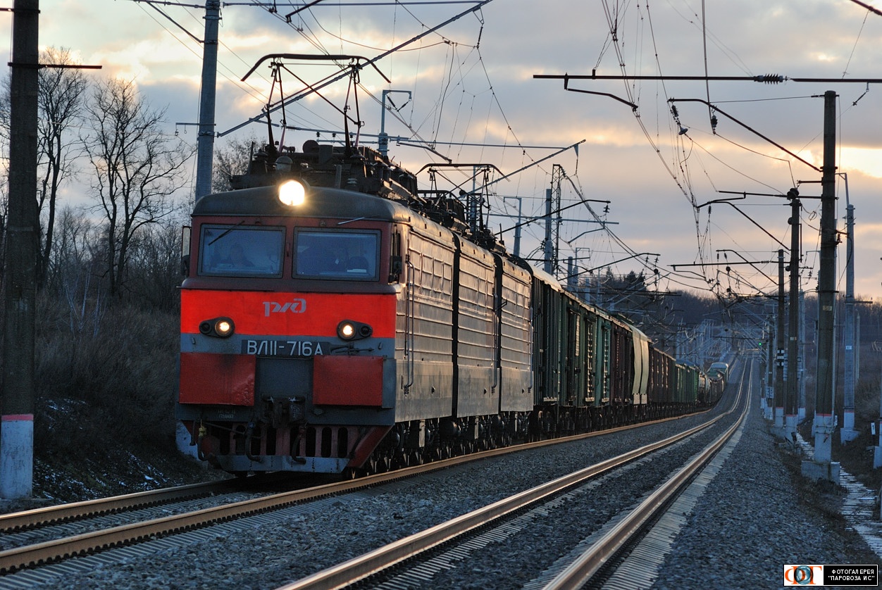 | Электровоз ВЛ11.8-716 с поездом, перегон Горбачёво - Плавск, Тульская обл. Автор: Корабельников А. | Фото сделано 27.XII.2015, опубликовано 31.I.2016.
