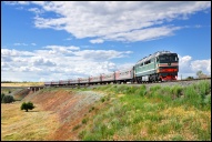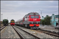 | Тепловоз ЧМЭ3-3578 с пригородным поездом на станции Камышин, Волгоградская обл. Автор: Dmittri | Фото сделано 20.X.2001, опубликовано 24.II.2016.