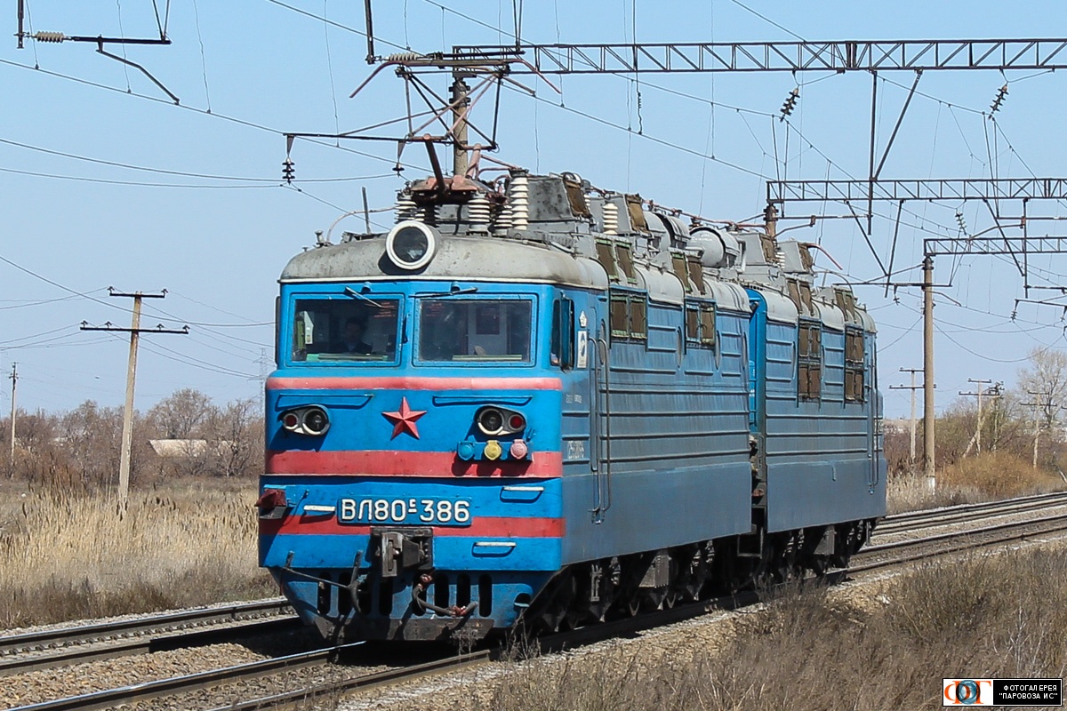 | Электровоз ВЛ80С-386 на перегоне Май-Кудук (Майкудук) - Жана Караганды, Карагандинская область Автор: motowoz | Фото сделано 17.IV.2016, опубликовано 19.IV.2016.