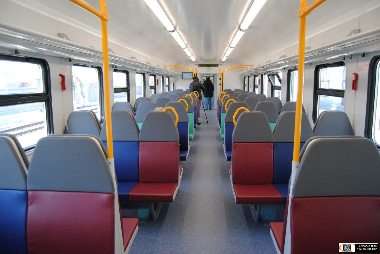| Салон вагона электропоезда ЭП2Д-0002, ст. Москва-Рижская, Москва Автор: Олег | Фото сделано 10.III.2016, опубликовано 24.IV.2016.