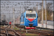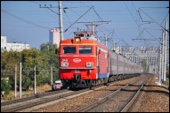 | Электропоезд ЭД9Т-0023 { ED9T-0023 EMU train }, ст. Волгоград-II { Volgograd-II station }, Волгоградская обл. Автор: Плотников П. | Фото сделано 20.V.2004, опубликовано 23.V.2004.