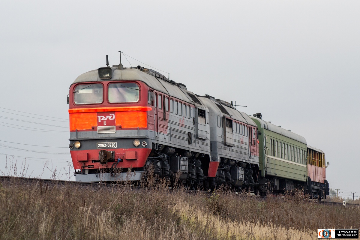 | Тепловоз 2М62-0726 на перегоне Кромы - Курбакинская, Орловская обл. Автор: Бурундук | Фото сделано 18.X.2015, опубликовано 1.V.2016.
