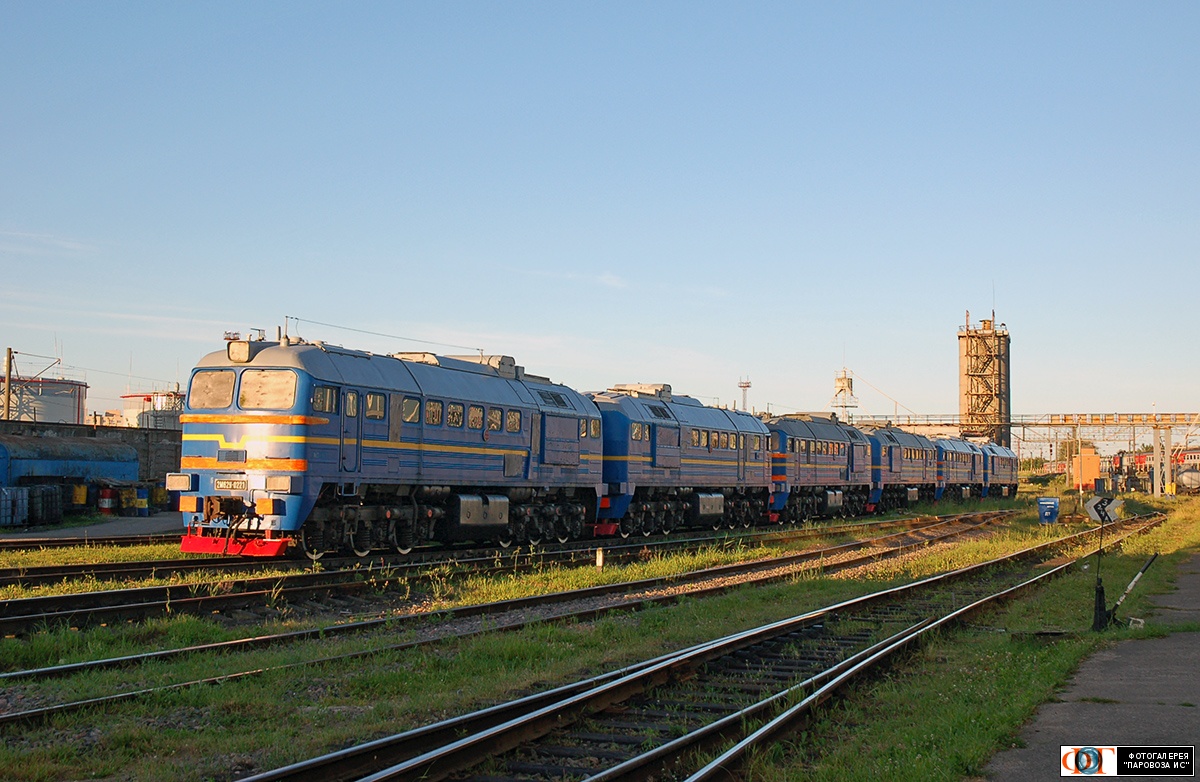 Тепловозы 2М62У-0221, 2М62У-0220 и 2М62У-0223 в сплотке, депо Калининград