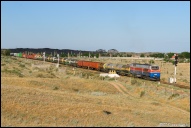 | Тепловоз ТЭП33А-0001 с пригородным поездом №7031 Сары-Озек - Алма-Ата-I на перегоне Боктер - Капчагай, Алма-Атинская область Автор: Dmitriy Lissin | Фото сделано 27.VI.2016, опубликовано 29.VI.2016.