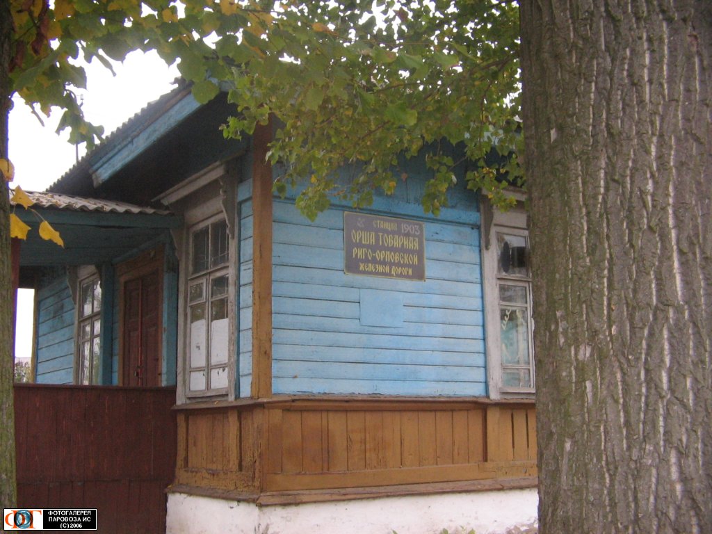 | Ст. Орша-Товарная Риго-Орловской ж.д., табличка на старом здании ст. Орша-Западная, Витебская обл. Автор: Саныч | Фото сделано 9.X.2005, опубликовано 10.XII.2006.