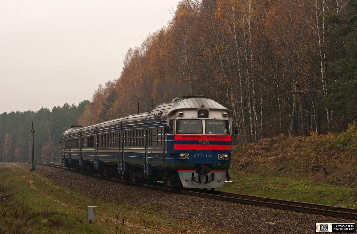 | Дизель-поезд ДР1А-192 следует по перегону Деревцы - Осиповичи-I, Могилёвская обл. Автор: леха | Фото сделано 6.XI.2015, опубликовано 11.XI.2016.