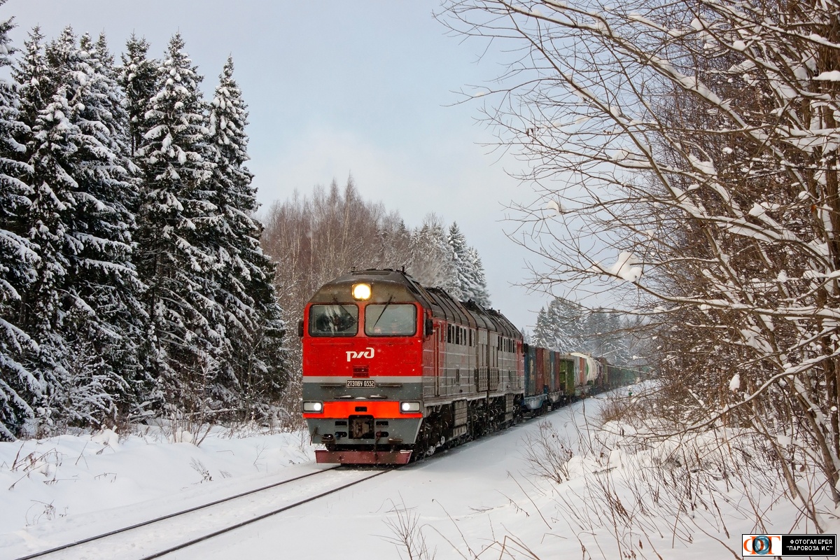 Тепловоз 2ТЭ116У-0332 с поездом на перегоне Остолопово - Красный Холм, Тверская обл.