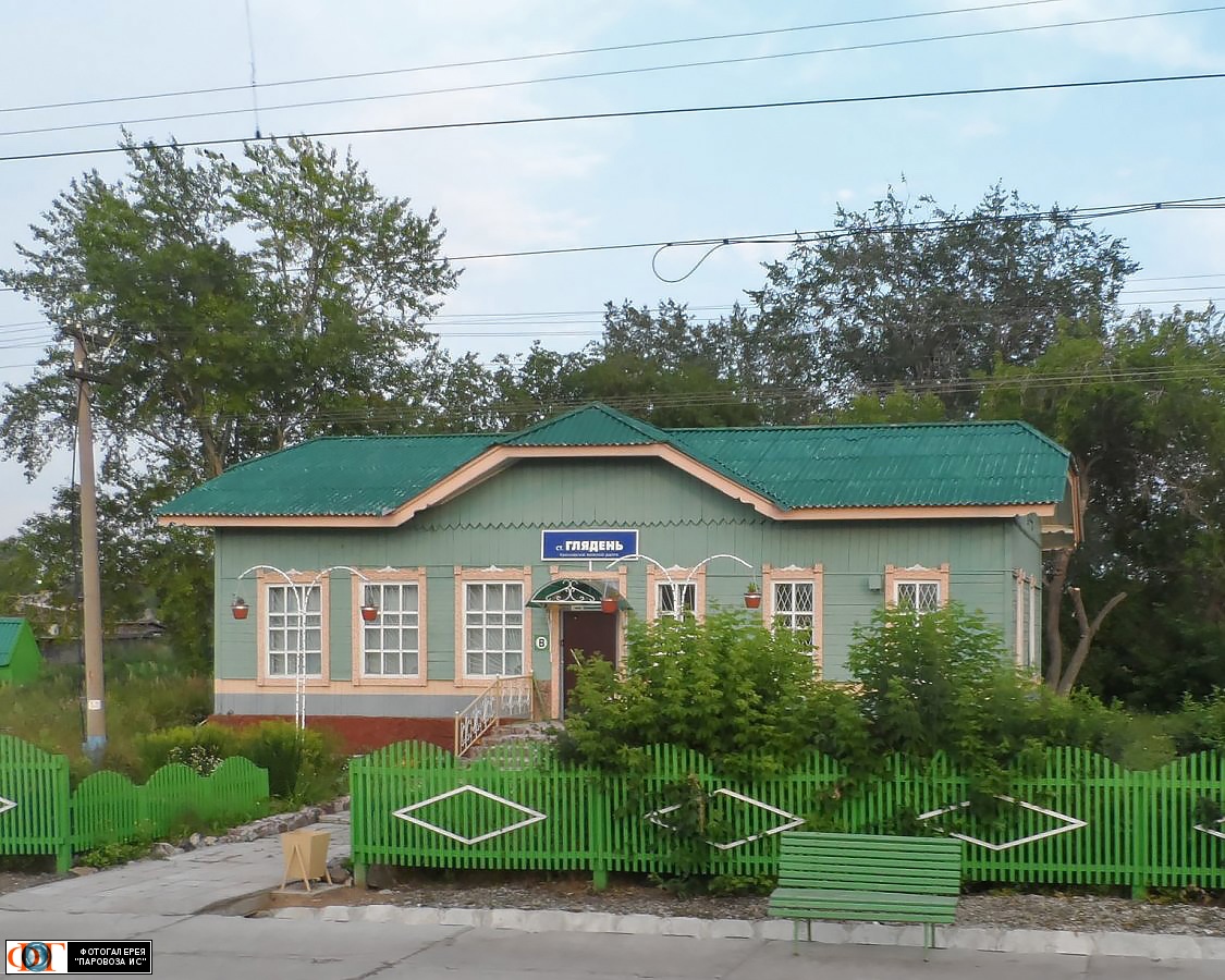 | Вокзал ст. Глядень, линия Ачинск - Тигей, Красноярский край Автор: Никич | Фото сделано 2.VIII.2013, опубликовано 3.II.2017.