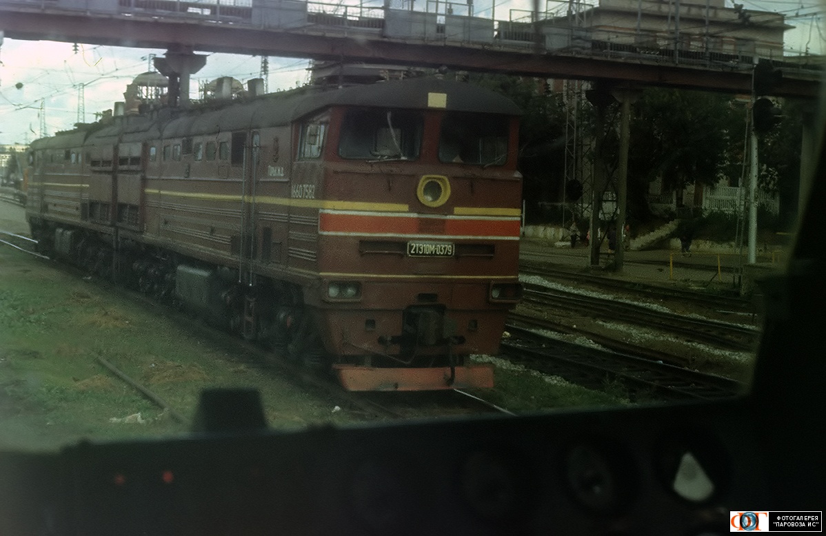 | Тепловоз 2ТЭ10М-0379 на ст. Казань, Татарстан Автор: Огнев О. В. | Фото сделано VIII.1994, опубликовано 11.III.2017.