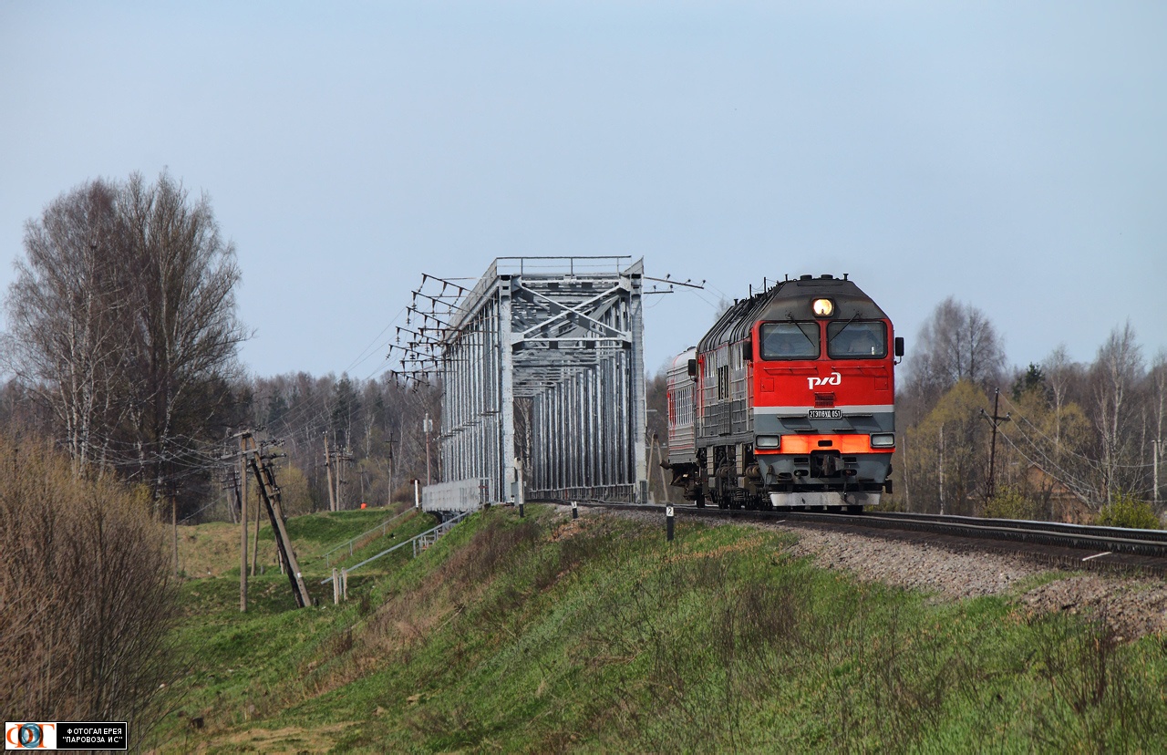 | Тепловоз 2ТЭ116УД-051 с пригородным поездом № 6454 Старая Русса - Едрово на станции Парфино, Новгородская обл. Автор: Дмитрий Васильев | Фото сделано 5.V.2017, опубликовано 3.VI.2017.