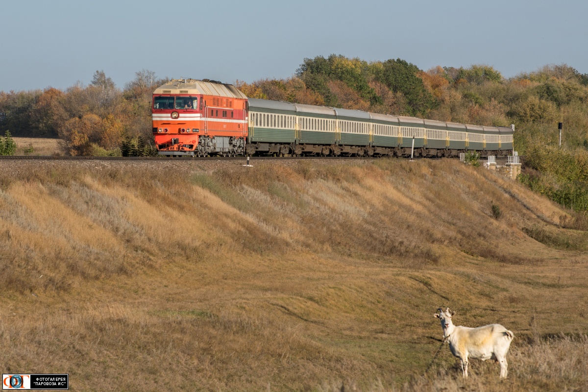 | Тепловоз ТЭП70-0299 с поездом Баку - Москва, перегон Добринка - Плавица, Липецкая обл. Автор: 73411979 | Фото сделано 25.IX.2015, опубликовано 25.VII.2017.